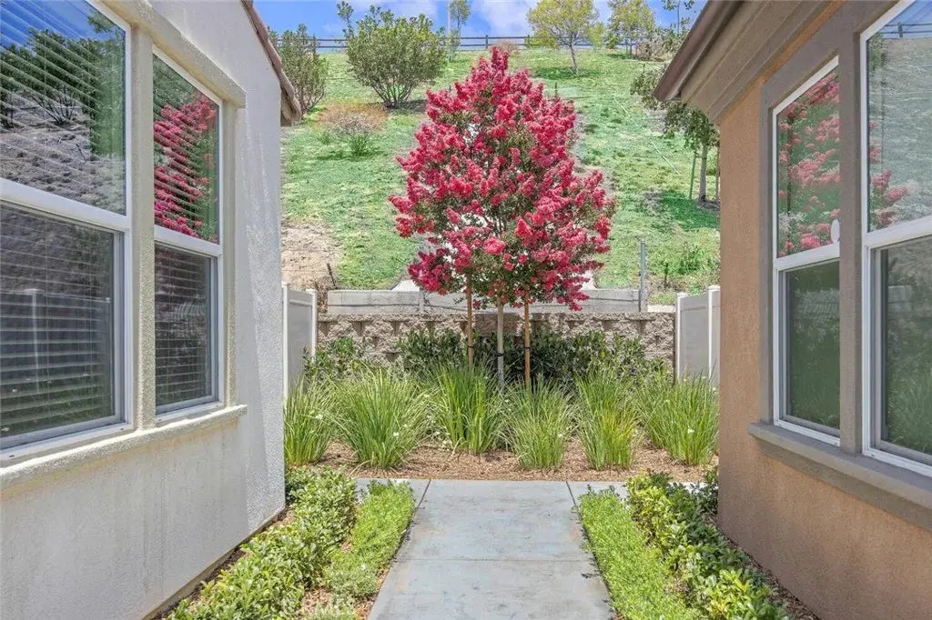 Welcome home to this stunning 3 Bedroom PLUS LOFT and 3 Bathroom Home in the Exclusive 55+ Galloway Gated Community! With 2 bedrooms on the MAIN FLOOR and the upstairs Loft plus additional bed and full bath, just perfect for guests! This open floor plan creates the perfect atmosphere for luxurious entertaining with a spacious living and dining room that open to the gourmet kitchen featuring beautiful stainless steel appliances, timeless granite countertops, upgraded white kitchen cabinets and a spacious center island with seating and superfluous storage! The indoor laundry room is conveniently located adjacent to the kitchen and 2 car garage complete with high ceiling and built in storage cabinets! The light and bright living room has been tastefully upgraded with luxury vinyl plank flooring and recessed lighting! The downstairs primary suite is a spacious oasis with a large soaking tub, dual sinks, huge walk-in closet with gorgeous and functional built-in storage features, even accessory drawers! In addition, there is a second bedroom and full bath on the main floor as well as a large bedroom and loft on the second floor! Upstairs, enjoy a spacious loft with custom built entertainment center and flat screen TV included with the home! The spacious loft is incredibly light and bright and boasts extra thick textured carpeting and leads to the covered balcony to enjoy beautiful Santa Clarita views! The second floor also features another generously-sized, private bedroom and a full bathroom, providing plenty of space for guests or hobbies! Step outside into one of the largest,