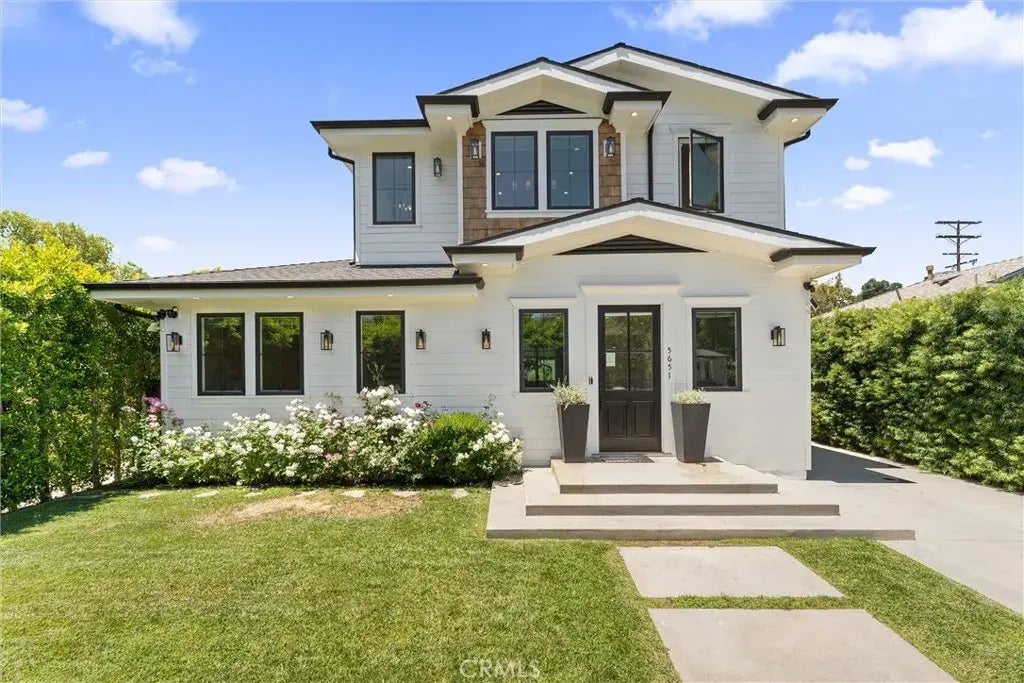 Welcome to this luxurious newer construction modern farmhouse, perfectly situated just a stones throw away from LAs trendiest restaurants, coffee shops and retail destinations - including NoHo West and The Shops at Sportsmens Lodge. This thoughtfully designed property features a stunning main home with 4 bedrooms and 3 bathrooms. Detached is a fully equipped ADU with it's own private address, a beautiful kitchen with stainless steel appliances, living/sleeping area and modern bathroom, ideal for guests, rental income, a home office and more. As you enter the main house, you're greeted by a gorgeous fireplace that anchors the spacious open concept living, dining and kitchen areas - ideal for entertaining and modern living. The chefs kitchen boasts sleek stainless steel appliances, a large center island/breakfast bar and an expansive view of the sparkling new pool and spa. The dining room flows seamlessly to the lush, private backyard - fully hedged with ficus trees and featuring multiple patio areas for relaxing or entertaining under the California sun. Downstairs, youll find two stylish bedrooms and a full bath, while upstairs hosts two more ensuite bedrooms, including a show-stopping primary suite. This tranquil retreat features vaulted ceilings, designer light fixtures, a custom walk-in closet and a spa-inspired bathroom. Step out onto the oversized private balcony and take in the serene views of the yard and pool below. Located in a prime LA location and in the Chandler school district, this exceptional property puts you close to everything - boutique shopping, top dinin