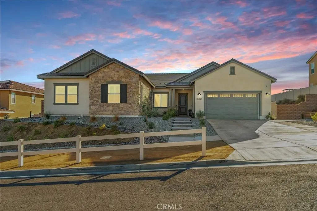 Turnkey Beauty in Joshua Ranch Skyridge Community. Welcome to Joshua Ranch, a gated community perched in the foothills of Palmdale. With panoramic views, .47 acre lot, owned solar, beautiful finishes & a phenomenal 3,572sqft layout, this home is an opportunity that should not be missed! Starting with its pristine, low maintenance exterior, the tone is set for the beauty that awaits inside. Entering the home, you find yourself in a bright entry with beautiful flooring & plantation shutters that adorn the entire home. To the right a tidy alcove with a half bath, closet and access to the 3 car garage. To the left, the first of 3 living spaces, great for a sitting or dining area. Continuing to the heart of the home is a chef's dream kitchen, dining area and large family room, all sharing a grand open space with beautiful natural light. In the kitchen you will fall in love with the beautiful aesthetics created by recessed lighting, sophisticated tile backsplash, the abundance of crisp white shaker cabinets, huge island w/ seating & pendant lighting, butlers pantry and large walk-in pantry. In the living room the sophistication continues with a sleek recessed electric fireplace & large glass slider that opens in both directions, providing a stunning view of the pristine backyard and phenomenal panoramic views of the surrounding foothills. Travelling back through the butlers pantry, you arrive in the front of the home and to the right, a short hall that takes you to a large, versatile bonus space. To the left you will find 3 impressively sized bedrooms, laundry room & a full bath,