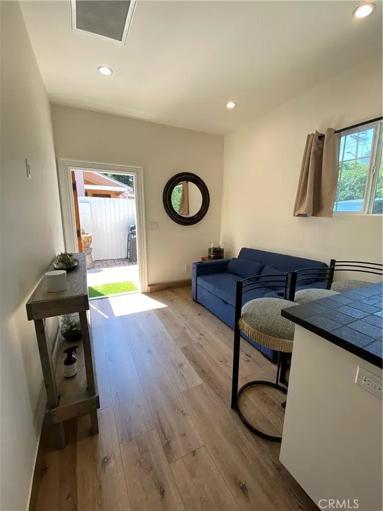 A newly built one-bedroom, one-bath ADU in the heart of Van Nuys is now available for lease. The unit is furnished for your convenience. It features wood-inspired flooring throughout, recessed lighting, stainless steel appliances (refrigerator, range hood, and stove), and a microwave. The bedroom features mirror closet doors and a new queen-size bed. The living room is furnished with a sofa and side table. T Enjoy a beautiful spacious private patio already furnished with a water fountain, patio table and chair. The owner pays for water. Tenant to pay for all other utilities. One year lease required. Street parking. Move-in ready. Furnished unit (ask for the list of items included)