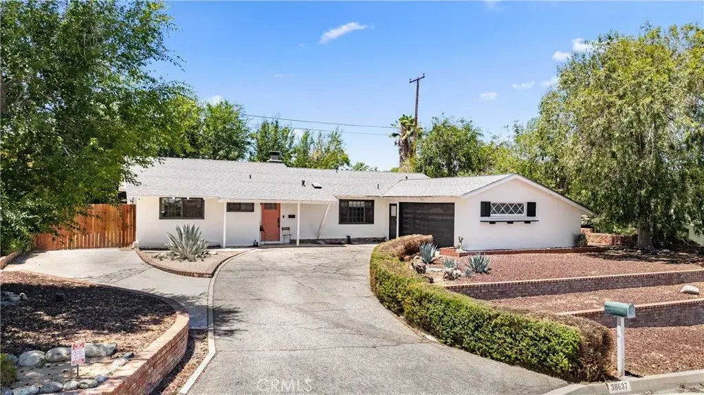 Welcome to 38637 Desert View Dr. this Charming West Palmdale Gem offers modern upgrades and RV access, Nestled on a serene, tree-lined street in one of West Palmdale's most sought after neighborhoods, this beautifully updated 4-bedroom, 2-bath home offers the perfect blend of comfort, style, and convenience. Located just minutes from schools, shopping centers, dining options, Palmdale Regional Hospital, and commuter-friendly freeway access, this property is ideal for families and professionals alike. Step inside to nearly 1,400 sq. ft. of thoughtfully designed living space. The home welcomes you with rich laminate wood flooring that flows seamlessly throughout the main living areas, creating a warm and inviting atmosphere. The spacious living room features a stunning floor-to-ceiling brick fireplace, perfect for cozy evenings. The kitchen boasts timeless white cabinetry, sleek black hardware, and elegant quartz countertops, offering a clean and modern aesthetic. Both bathrooms are enhanced with durable and stylish tile flooring. Recent upgrades include a new roof, new exterior paint, and newer vinyl windows, ensuring peace of mind and energy efficiency. Set on a generous 9,600 sq. ft. lot, the property features a two-car garage, a large driveway that fits multiple vehicles, and RV access. The backyard is perfect for entertaining or relaxing with a large covered patio and block wall, fencing for privacy. Don't miss this rare opportunity to own a move-in ready home in one of Palmdale's most sought-after areas! Call us today for a private tour of this home.