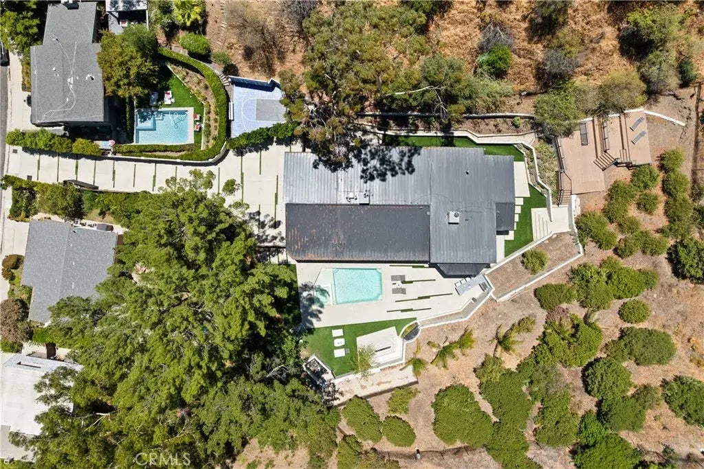 Tucked away in the hills of Encino, this beautifully updated home sits on a sprawling 30,000+ sf, gated flag lot that offers unparalleled privacy and seclusion with no direct neighbors behind you. As you enter the home youre greeted to a light and airy open-concept floor plan highlighted by oversized sliding glass doors that seamlessly extend your living space outside. The spacious main living area consists of a sun-drenched living room, formal dining room with a temperature-controlled wine closet and gourmet chefs kitchen outfitted with high-end Thermador appliances, a walk-in pantry and waterfall island with seating. Four generously sized ensuite bedrooms are spread throughout the home, each featuring a walk-in closet. The luxurious primary suite serves as a private sanctuary, complete with a large walk-in closet and spa-inspired bathroom showcasing a soaking tub, oversized rainfall shower, and double vanity. Designed with entertaining in mind, the resort-style backyard retreat boasts a sparkling pool/spa, fully equipped outdoor kitchen with bar seating, sunken fire pit and tiered deck that captures stunning vistas. Additional highlights include a dedicated laundry room, high ceilings throughout, built-in speakers, a security system, EV charger and two-car garage. Ideally situated South of the Boulevard in the highly sought-after Lanai Road School District, this exceptional property offers seamless access to both the Westside and the Valley.