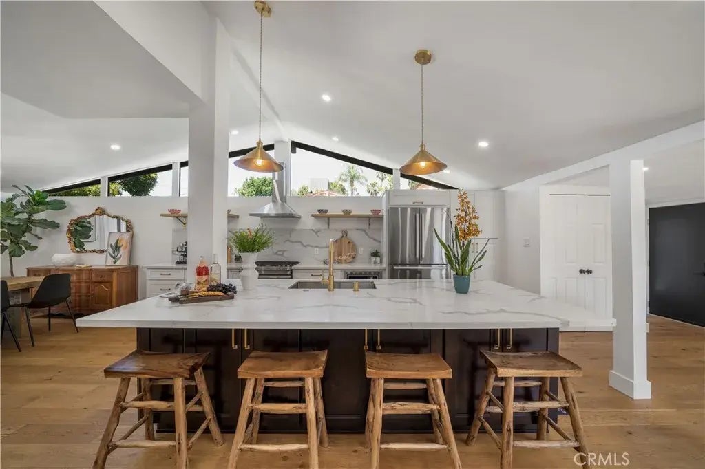 CORBIN PALMS A Palmer & Krisel Mid Century Modern Gem Nestled in the celebrated Corbin Palms area. Thoughtfully remodeled for todays refined palette without great compromise of its original DNA. Recent upgrades were done within the last 5 years as follows: *Newer Roof with insulation*, *Newer AC and Heat*, *Newer Tankless Water Heater*, *Updated Electrical panel*, *Nest System*, *Most Interior Doors and some exterior*, *Newer Kitchen*, *Newer Baths*, *Newer White Oak engineered wood floors*, *Newer Paint In & Out*, *Newer Landscaping*, *Newer light fixtures*, *Some updated plumbing*, *Newer Front Privacy fencing* and much more. This architectural treasure offers dramatic clean lines, low profile roof planes, and abundant glass that define the MCM aesthetics. Upon arriving, a privately gated entry opens to an intimate courtyard that sets the classic mid-century tone and reveals a striking formal foyer leading into the open floorplan living, dining, kitchen, and sitting areas. Overhead clerestory windows, walls of glass, French doors, and narrow casement windows flood interiors with light while forging a seamless connection to the outdoors, a hallmark of Mid Century Modern architecture. Spacious high ceilings with walls of glass, a wood-burning fireplace, and an open living area ideal for entertaining. Chef inspired two tone kitchen featuring quartz counters, stainless steel appliances and hood, a center island, recessed lighting, abundant cabinetry, pantry with pull outs, and modern white oak shelving and white oak engineered flooring throughout. Primary suite opens via Fre