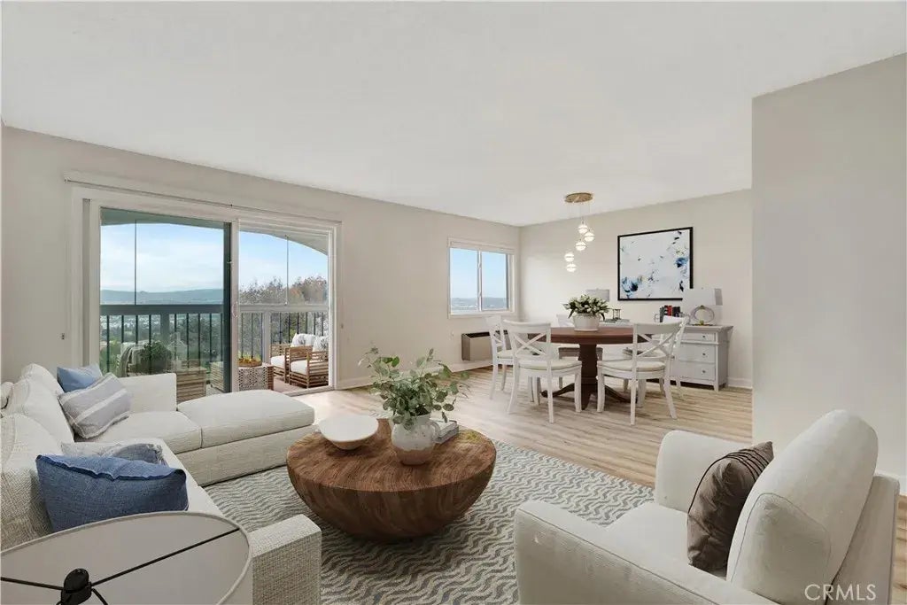 SPECTACULAR PANORAMIC VIEWS! Enjoy resort-style living in this newly remodeled 1 BDRM/2 BA penthouse with stunning views in the 55+ community of Laguna Woods. This top-floor unit is immaculate with brand-new engineered wood flooring, fresh paint and baseboards. Enclosed view deck offers an unobstructed view of Saddleback Valley (daytime) and city lights from a direction that rarely comes on the market. Light and bright living area is spacious and there is a separate dining room, both with gorgeous views. The kitchen has newly painted white cabinets, upgraded Bosch dishwasher and newer range/oven. The primary suite has lush tree views, long mirrored closets and bathroom with a single vanity and newer reglazed tub and shower. Dual paned windows throughout. This unit is located in the exclusive hilltop Gate 14 section of Laguna Woods. The three-level building includes an elevator along with convenient laundry rooms on each level located just steps away from the unit. Trash chute is also located on the 3rd level. Nearby covered carport with additional storage. Minutes away from world-class restaurants and shopping in Laguna Beach. Enjoy views of city lights every night, Disneyland fireworks and snow capped mountains in the winter. Laguna Woods is a 55+ community with a 27-hole championship golf course, 7 clubhouses, 5 pools, 3 fitness centers, pickleball courts, wood and metal shops, arts and crafts, tennis, stables and over 250 clubs plus transportation system. *** Note, some photos have been virtually staged***