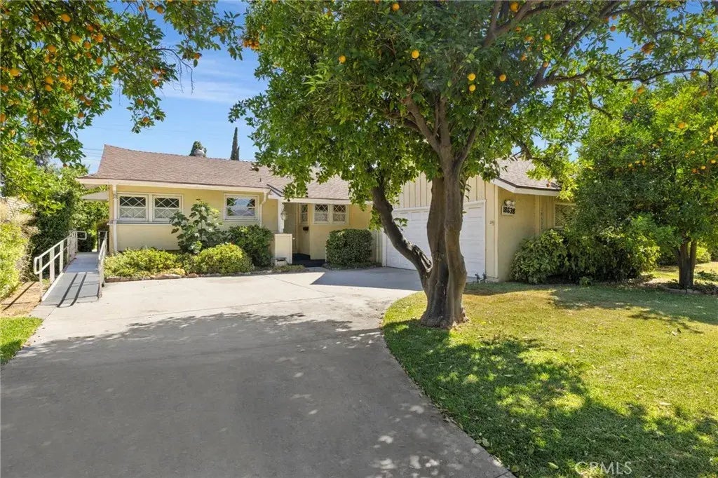 Set on a peaceful cul-de-sac and surrounded by mature orange trees, this single-story ranch home blends timeless charm with modern comforts. Original hardwood floors and a cozy fireplace create a warm welcome, while dual-pane windows and central air conditioning provide year-round comfort. The versatile floor plan offers four bedrooms and two bathrooms, ready to be tailored to your vision. An enclosed patio expands the living space, perfect for relaxing, dining, or entertaining. Ideally located near shopping, dining, and California State University Northridge, this home is a wise investment for first-time buyers or anyone eager to make their own upgrades.