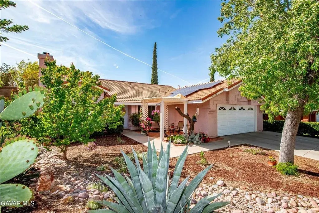 Nestled on a cul-de-sac, located in the desirable Rancho Vista area, this single-story 3 bedroom + 2 bathroom home shows pride of ownership and has PAID solar! Upon arriving, you'll notice the beautiful curb appeal of a manicured front yard which incorporates well-established trees, plants, and some drought-resistant landscape. Greet your guests under the lattice-covered front porch or enjoy the morning rays of sunshine to start your day. Enter the home to appreciate the vaulted ceilings, natural lighting from all the windows, the warm tones of neutral color paint, wood laminate flooring, recessed lighting, custom archways, and ceiling fans throughout. The formal living room features a fireplace with a brick hearth, perfect to cozy up to during the colder season, and opens into the spacious formal dining area. The kitchen is elegantly designed with custom tile flooring, multiple cabinets, stainless steel appliances including the refrigerator, and tile countertops and backsplash. From the kitchen, you have an additional dining area with pendant lighting. The family room offers a sliding glass door to the backyard. Carry on down the hall to 3 spacious bedrooms and 2 full bathrooms. The primary bedroom has a vaulted ceiling, a walk-in closet, and a sliding glass door leading to the backyard. The primary bathroom has custom tile flooring, a double sink vanity, a garden tub, and a stand-alone shower. The guest bathroom has modern updates of custom tile flooring, neutral color paint on the cabinets, a light fixture, and a tub/shower enclosure. Step out back to nestle in with a co