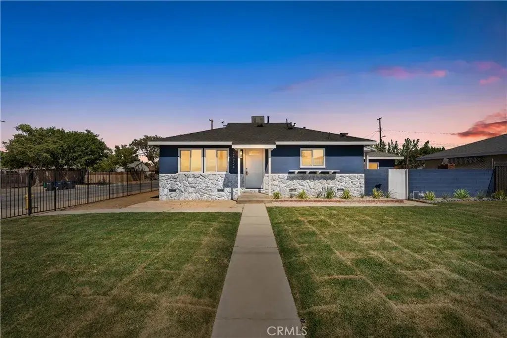 Beautifully Renovated 1950s Corner-Lot Gem! This fully updated 3-bedroom, 2-bathroom home offers modern comfort while retaining its timeless charm. Situated on a spacious corner lot, the 1,020 sq. ft. residence has been thoughtfully remodeled from top to bottom. Step inside to discover new waterproof vinyl flooring, new vinyl windows, and fresh interior & exterior paint. The open-concept kitchen boasts all-new shaker cabinets, quartz countertops, stainless steel appliances, single-basin sink, and recessed lightingperfect for cooking and entertaining. The kitchen flows seamlessly into the inviting family room, creating a warm gathering space. Both bathrooms have been completely refreshed with new tubs/showers, vanities, toilets, and modern light fixtures. The primary suite offers a private on-suite bath for your convenience. Upgrades include new PEX plumbing, upgraded electrical panel, new wall furnace, and a newer roof, ensuring worry-free living. Outside, enjoy a newly landscaped enclosed front yard with irrigation, a large, fenced backyard with alley access, and a 2-car garage with laundry hookups and a new door/opener. Move-in ready, energy-efficient, and loaded with updatesthis home is ready for its next chapter.