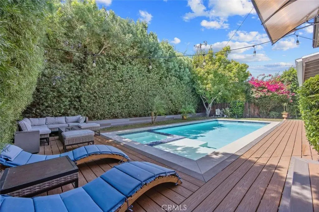 Welcome to this magnificent single-story 3-bedroom, 3-bathroom home in the heart of Woodland Hills! This residence showcases an updated chefs kitchen with high-end appliances and a cozy breakfast nook. Beautiful hardwood flooring flows throughout the open-concept layout, perfect for entertaining. Enjoy solar panels for energy efficiency and an electric car charger for your convenience. The home features a very private front yard with mature fruit trees, creating a serene and inviting entry. Step outside to a lush backyard retreat with a sparkling saltwater pool and spa, ideal for relaxation or gatherings. All of this is situated just minutes from highly rated schools, shopping, dining, and the renowned Warner Center. Dont miss this opportunity to make it your own!