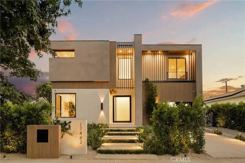 Nestled in prime Encino, this newly built contemporary-modern estate, crafted by a luxury builder with a legacy since 1993 offers 5 bedrooms, 5.5 bathrooms, and 3,143 sq ft of refined living space on more than 5,500 sq ft of private grounds. Thoughtfully reimagined, the residence seamlessly blends sophisticated design with state-of-the-art technology. Its striking exterior is enhanced by curated landscaping, highlighted by a grand olive tree anchoring the front yard. Inside, the expansive layout impresses with both an entertainer's living room and a separate family room. A 72 gas fireplace finished in porcelain and Tuscany plaster anchors the space, complemented by a built-in TV. The chefs kitchen is a showpiece of style and function, featuring a grand island and peninsula, custom cabinetry, a full-height pantry, and top-tier appliances from Wolf, Signature, and Fisher & Paykel. Sleek porcelain counters, a matching backsplash, and an under mount sink bring the design together with effortless elegance. The primary suite is a luxurious retreat with a balcony and a custom walk-in closet with built-ins, LED mirrors, and a dressing table. Windows with electric tinting technology provide instant privacy at the touch of a button. Spa-like bathrooms elevate the everyday with wood vanities, textured porcelain showers, and a refined mix of matte black and brushed gold finishes. Towering ficus hedges ensure privacy, while star jasmine, boxwood, and bamboo accents create a serene backdrop. The backyard is an entertainers dream, featuring a white pebble pool and spa with full automation