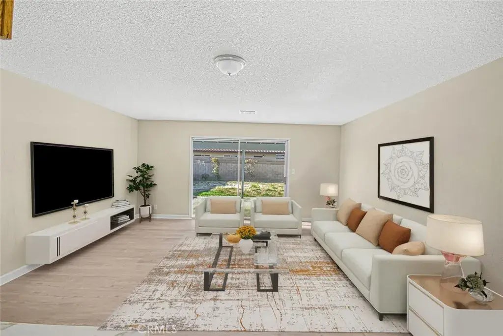 This beautifully renovated home is move-in ready and offers fresh updates throughout, starting with full interior paint that brings a clean, modern feel, paired with crisp new exterior trim paint for a polished look. The updated kitchen is a showstopper, featuring sleek quartz countertops, brand new stainless steel appliances, a new stainless steel sink, and a modern faucetperfectly blending style and functionality. Brand new plank flooring flows through all common areas and bathrooms, while plush new carpet adds warmth to the bedrooms, ensuring comfort in every room. The upgrades continue with all-new plumbing and light fixtures, creating a cohesive and contemporary atmosphere throughout. Enjoy both formal and casual spaces with two separate living areas, a dedicated dining area, and a cozy family room complete with a gas fireplace. Central heat and air keep the home comfortable year-round, and the 2-car garage provides convenient parking and storage. The master bedroom is a private retreat with its own slider to the backyard patio, a tub/shower combo with glass doors, new toilet and faucets, and mirrored closet doors. Step outside to a large backyard enclosed by sturdy block walls, with a covered patio that overlooks the spacious yardperfect for entertaining or letting the kids and pets run free. Located in a great neighborhood close to schools, parks, shopping, and more, this is a rare offering you won't want to miss. Come see this stunning home before it's gone!