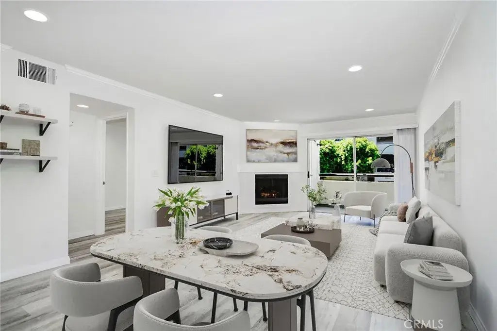 Resort style living in the heart of Warner Center, welcome to The Met! Immaculate 2 Bed + 2 Bath condo located on the 1st floor of building #2. Turn key West facing unit drenched in natural light, walking distance to the main pool, gym & tennis courts. Certainly the most desirable floor plan, this style utilizes an open concept with a guest bedroom and full bath up front, while the master sits at the back of the unit with views of the exterior! The master bedroom also offers a luxurious en suite bathroom featuring updated tile flooring with double vanity sinks in addition to an enormous closet. This spacious and beautiful condo features such upgrades as luxury vinyl plank flooring (NO CARPET), recessed LED lighting throughout, gas fireplace, granite countertops & stainless steel appliances. Designated dining room for more formal eating yet with open views to the living area and outdoor space. A peaceful West facing balcony sits off the living room, ideal for a BBQ and/or outdoor sitting area. Last but not least, your very own WASHER & DRYER IN THE UNIT, 2 COVERED parking spaces in the garage below & extremely close proximity to the lobby elevator!!! The Met is a guard gated community that offers 4 resort-style swimming pools, six night lighted tennis courts, full fitness center, racquetball, indoor basketball court, multiple spas & 24 hour guard gated security. All this located within walking distance to The Village, Warner Center Park and all the dining, shopping & entertainment Warner Center has to offer.