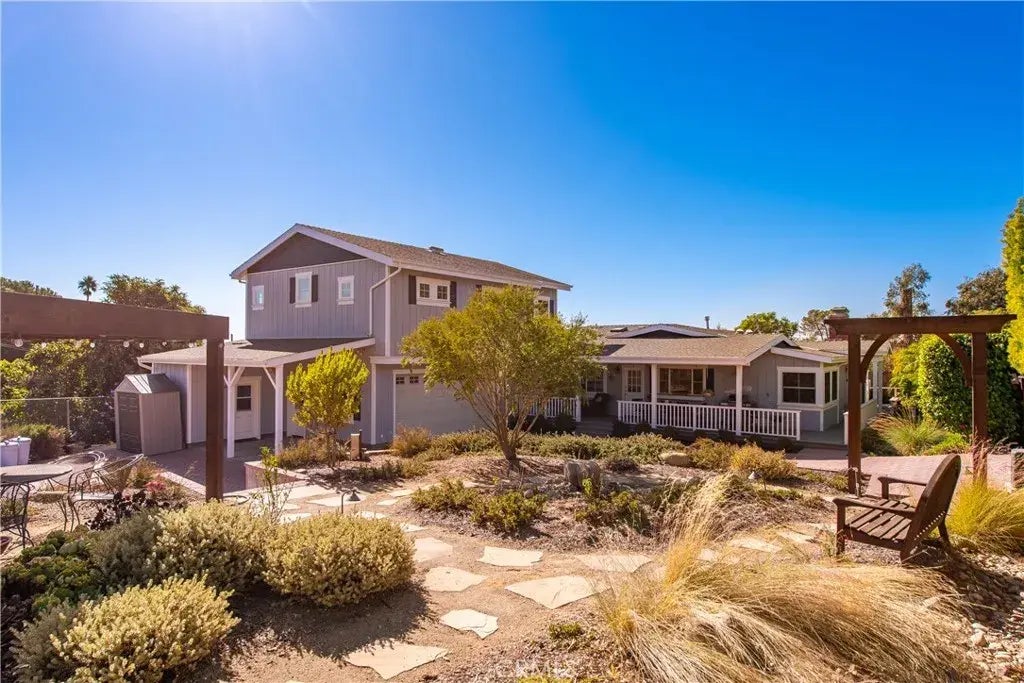 Welcome to your Camarillo retreat! Set behind private gates on almost 1.6 acres of producing avocado orchard, this custom home blends the tranquility of country living with the convenience of being just minutes from schools, shopping, dining, and everyday amenities. Inside, youll find 3 bedrooms, 3 bathrooms, and approximately 2,925 sq. ft. of inviting living space, highlighted by a wraparound deck perfect for relaxing or entertaining. The spacious living room features wood floors, exposed beam ceilings, skylights, and a stacked-stone fireplacecreating a warm, welcoming focal point. French doors and large sliders open directly to the deck, where serene views of the koi pond await. The remodeled farmhouse-style kitchen is the heart of the home, offering quartz countertops, imported subway tile backsplash, stainless steel appliances, a farmhouse sink, and a bright breakfast area with a custom built-in credenza. On the main level, the oversized primary suite includes a remodeled ensuite bath and direct deck access. A secondary bedroom with French doors, a full hall bath, and a large laundry room with custom cabinetry complete the floor. Upstairs, youll discover another primary suite with a stylishly updated bath, a spacious office, and a balcony with sweeping views of the valley, hills, distant ocean, and sunsets. Outdoor living shines with a large covered porch, wraparound deck, and multiple seating areas. The property also offers a two-car garage, carport, attached storage, and a shed. The orchard, with 103 thriving avocado trees, plus enclosed raised garden beds, sets the s