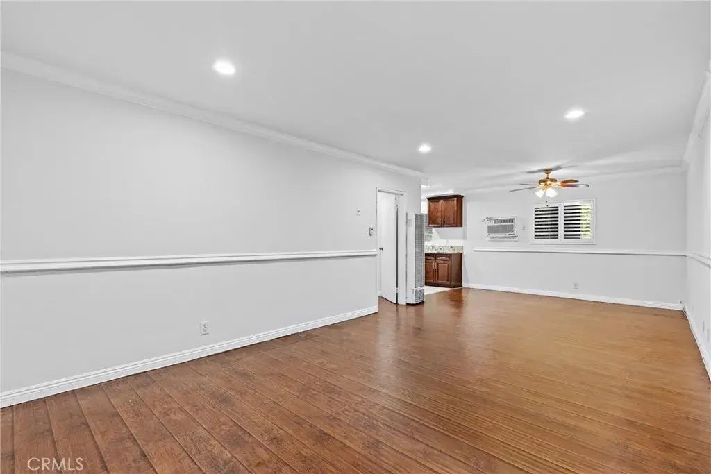 Welcome to this stylish and move-in ready one bedroom, one bathroom condo offering approximately 800 sq ft of comfortable living space in a well-maintained complex. This bright unit features wood-look flooring throughout, crown molding, recessed lighting, and ceiling fans in both the living room and bedroom. Enjoy cooking in the upgraded kitchen, complete with stainless steel appliances, granite countertops, and rich cabinetry. The open-concept layout flows into the dining area and spacious living room, perfect for entertaining or relaxing. Step outside to your private balcony, ideal for enjoying fresh air. The community also offers access to a sparkling shared pool, perfect for sunny days.
