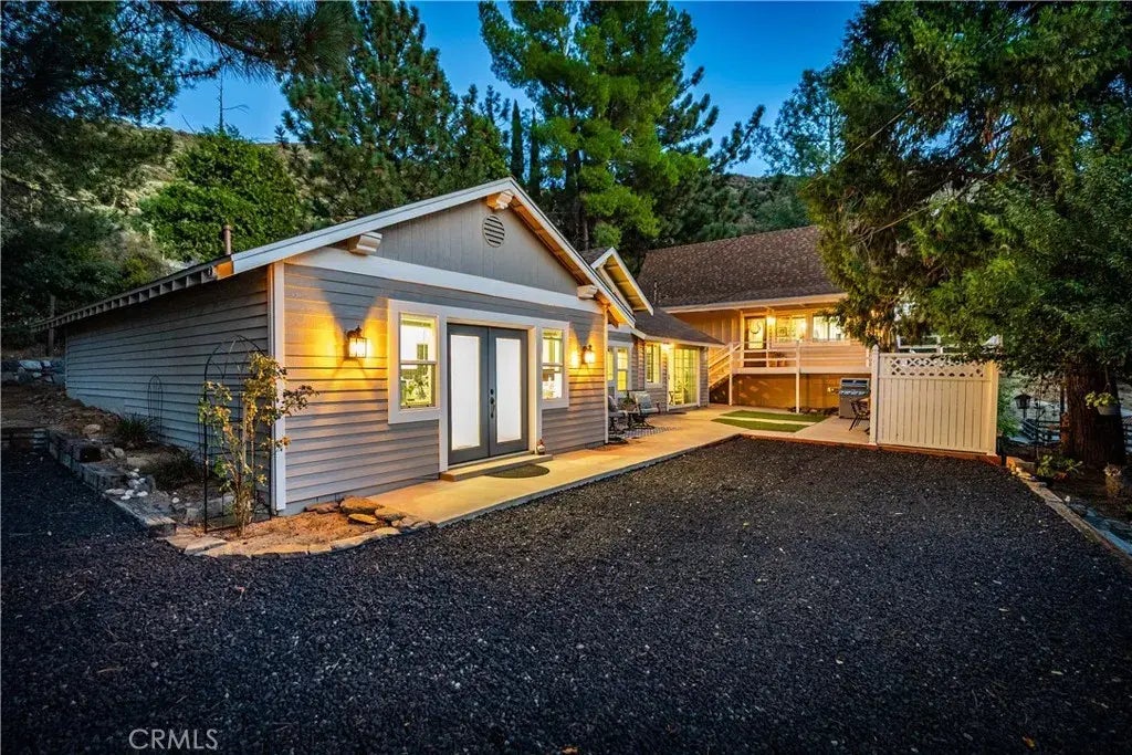 Stunning Green Valley retreat on a quiet looped street with beautiful views! This unique property sits on four parcels totaling almost one-half acre, with the main home and guest home situated on two, and two additional parcels large enough for a future shop or expansion. Both residences have been professionally remodeled, the main home in 2007 and the guest home in 2005, with further upgrades completed in 2021 and 2023, including a beautiful new wrap-around deck and fresh exterior paint. Both homes feature newer roofs, water heaters, dual-pane windows with custom tinting, and HVAC systems for year-round comfort, along with cozy pellet stoves for added warmth and charm. The main home showcases tile flooring, tongue-and-groove ceilings, and ceiling fans, with a well-designed kitchen that offers a bay window, quartz countertops, center island, and stainless steel appliances including a 5-burner gas range, microwave, refrigerator, and dishwasher. A downstairs bedroom and full bath provide convenience, while the upstairs offers a vaulted ceiling bedroom and family room. Additional features include an indoor laundry room with storage. The spacious guest home includes two bedrooms and a full bath, a large living room, and a versatile dining, office, or game room with vaulted ceiling and elegant chandelier. The kitchen is nicely appointed with an oversized pantry and laundry area, while vinyl plank flooring and carpeted bedrooms add comfort. The guest house is equipped with central heating and air, an additional AC unit in the living room, a pellet stove, and even a full attic sto