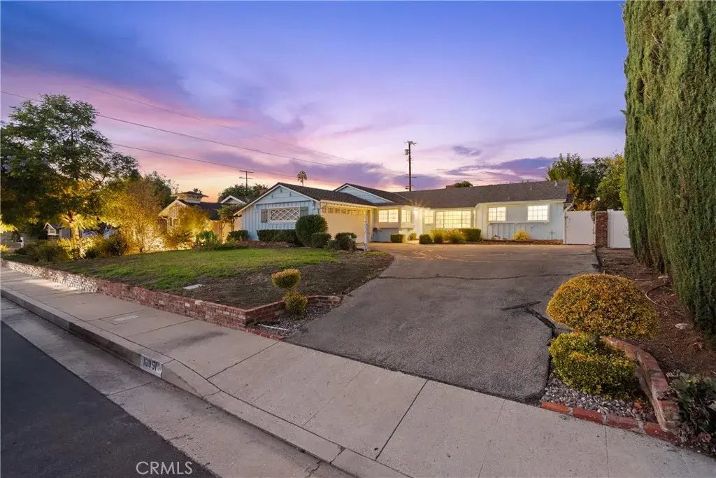 Nestled in the highly sought-after Walnut Cove enclave of homes in Northridge, this charming mid-century ranch home offers a timeless blend of classic character and thoughtful modern updates. Located in a warm, community-oriented neighborhood of well-cared-for homes, this inviting residence features 4-spacious bedrooms, 2-bathrooms, and a private backyard retreat with a sparkling poolperfect for enjoying the relaxed California lifestyle. A welcoming front porch sets the tone for the homes inviting interior, where hardwood floors, mid-century design touches, and tasteful updates create a bright and comfortable living environment. The updated kitchen is ideal for any home cook, boasting granite countertops, ample cabinetry, a sunny breakfast nook, and a full suite of appliances including a gas range, electric oven, and dishwasher. A separate laundry room with storage and side-yard access adds convenience. The spacious living room offers the perfect space for relaxing or entertaining, featuring a cozy fireplace, recessed lighting, and a large sliding glass door that opens to the backyard for easy indoor-outdoor living. For more formal gatherings, the separate dining room showcases plantation shutters and recessed lighting, providing a refined setting for hosting. The primary suite is a peaceful retreat with beamed ceilings, dual mirrored closets, recessed lighting, and an en suite bathroom with a tiled shower-over-tub. Three additional bedrooms are bright and comfortable, each with hardwood floors and generous closet space. A full hallway bath with vanity and shower-over-tub s