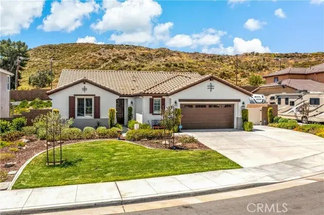 Wow! This newly built, ecofriendly, cul-de-sac single story Menifee home has been completely upgraded and shows like a true model! Its country living at its finest and just minutes away from all the fine dining and shopping thats offered downtown. It has 3 oversized bedrooms, 2.5 bathrooms, a super-sized laundry room complete with plenty of storage space, a chef's kitchen, dining area, a two and a half car garage, and an open concept great room! It has custom paint, plantation shutters, along with upgraded carpet and LVP flooring, theyve installed Craftsman Wainscoting in the entryway. The kitchen boasts stainless steel energy efficient appliances, a new stove and double oven along with a large center island, a walk-in pantry, tile flooring, and beautiful granite countertops. The dining area is open to both the kitchen and the oversized great room, which opens to a covered back patio and its spacious backyard which includes artificial turf, RV parking and full RV Hookups! The backyard is very private and there should never be any homes directly behind it. The master bedroom is very large and has its own separate entry to the back patio. The master bedroom is also connected to its master bathroom which has dual sinks, and a separate shower and tub, along with a walk-in closet. They have a Ring Camera on the front porch, there is Quiet Cool house fan, and leased solar which keeps the electric bill super affordable. This home is spotless and will not last long at this price so schedule your private tour today before it is too late!