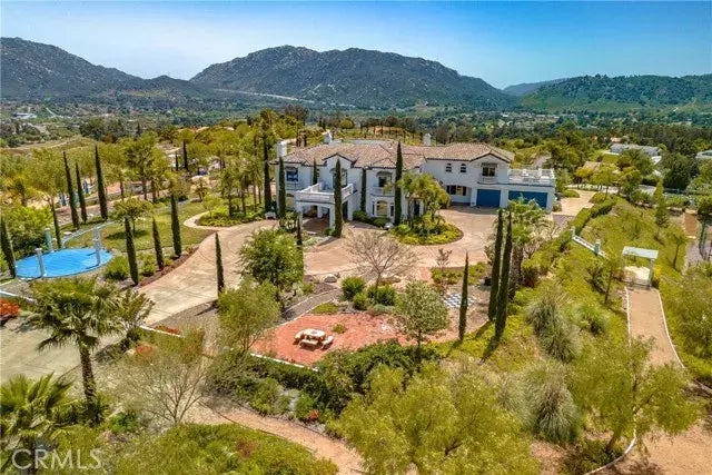 ****SIMPLY THE MOST AMAZING PROPERTY WITHIN THE CITY OF TEMECULA!! This Resort-Like custom colonial Spanish Mediterranean property located in the prestigious Chaparral/Santiago Estates is for the people who want it all. Be King of the Hill! The possibilities for this site are endless... Corporate Retreat, potential Bed and Breakfast or multi-generational Family Compound. 15 acres of amazing privacy with gorgeous 360 degree views, fabulous sunsets, city lights, snow capped mountains, the entire valley at your feet. Main house is approx. 6,747sf, Guest house 915sf plus art studio/ workshop, Pool Casita 709sf, plus multiple entertaining rooms on property, and exquisite gardens, raised vegetable garden, and numerous fruit trees. Lighted Tennis Court, basketball, sand volleyball, pickle ball, horseshoes, 76 foot Bocce Ball court/ horse corral, planted vineyard. Numerous outdoor entertaining areas. Main house has 6 full en-suite bedrooms plus office, four car garage. Unique triangular concrete garden with balustrades for lavish parties and get togethers. Best of all, this property is located in the heart of town, close to Old Town, freeway, schools, Pechanga, shopping. Wonderful chef's kitchen with large island, dual sinks, seated bar, new 8 burner Viking Stove with griddle, double ovens w pot filler, Thermador with double ovens, warming tray, Sub zero Refrigerator, 2 Bosch dishwashers. Coffee area/ butler's pantry/ walk in pantry. Gigantic master bedroom deluxe suite with fireplace, and the largest closet rooms you've ever seen! This place is built for entertaining at a large sc