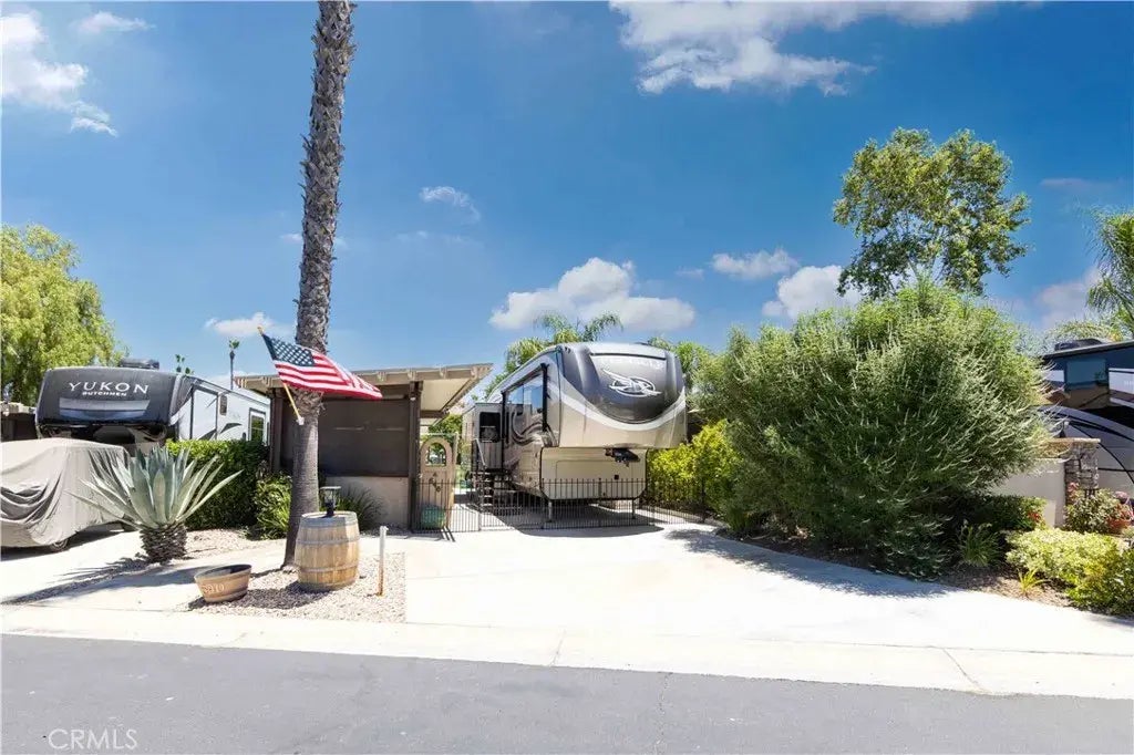 Stunning Views, with all the amenities you want to enjoy your days and nights overlooking the Golf Course and Pond. Allumawood Cover with Family Room and full kitchen - Stove, Fridge, Beverage Cooler and BBQ/Stove Top. Washer and Dryer are attached to a Bar/gathering area and next to outdoor Fireplace and TV area. Property is surrounded by dog fencing to keep you pups safe. Lots to see here, come with open and and dropped jaw... Rancho California RV Resort provides amenities such as a 14-hole Executive PAR 3 Golf Course (no fees for owners and unlimited usage), 5 Pools/Jacuzzis, Tennis courts, Pickleball courts, Dog park, Club house, hiking trails, Horseshoe lawn and onsite grocery market. The resort is guard gated with no age restrictions and just minutes from SoCal Wine Country! Convenient access to San Diego, Palm Springs, Oceanside and Los Angeles. *FINANCING AVAILABLE*