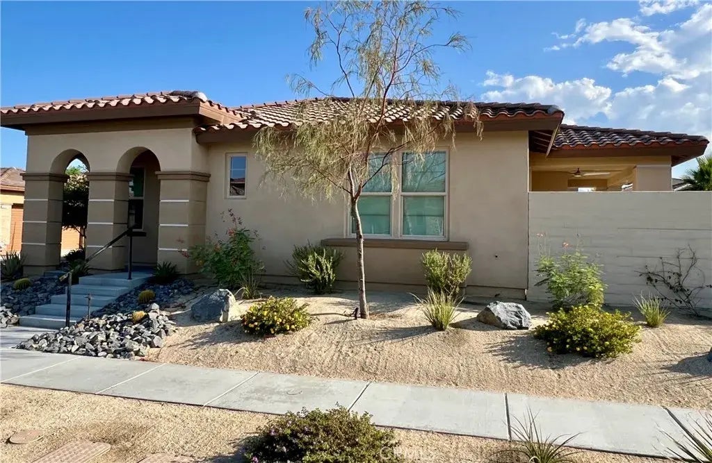 Former model home built in 2020 located in the gated community of Genesis. 2-bedroom 2-bath single story home. Dining room can be converted to a 3rd bedroom. The home upgrades are impressive which consist of quartz countertops, custom tile kitchen backsplash, center island and stainless-steel appliances plus the slightly larger backyard compared to most models this size is desert landscaped to enjoy. The white, light and bright color scheme of the flooring, cabinetry, counter tops are most desirable for this model. Corner lot with spectacular views from living room and dining room. Back yard is larger than most with the same square footage. Beautifully landscaped and private. The amenities include community pool and spa, fitness center, clubhouse, BBQ area, dog parks and walking trails. Coming in 2025, within walking distance a park will include Pickleball courts, basketball courts, picnic areas, exercise stations and so much more. Professional Pictures to be uploaded by 08/04/24