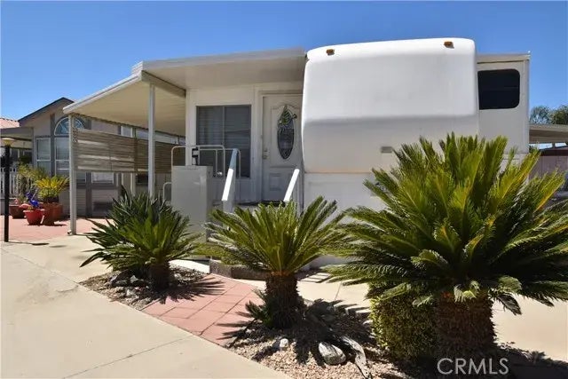 Here is your opportunity to own your lot home in this lovely gated 55+ resort community. The home is well appointed with a added living room with tons of windows, newer carpet, powder room and coat closet. There is a two car carport and a large improved shed with a full sized washer and dryer. Step inside this well cared for Alfa trailer and you will be amazed by all of the room and the amenities. The kitchen features a Convection microwave Oven, Sink, three burner range, & oven, double Refrigerators, overhead cabinets, dining area, lounge sofa, and entertainment area. Step into the Bed & Bath area with angled shower, TV/Linen Cabinet, custom vanity, private toilet area, front queen bed w/wardrobes. There is a chair lift to the front door to enable access for anyone with mobility issues as well as a storage shed as well. The home is located near the clubhouse. This fantastic 55+ community features state of the art amenities including pool, spa, club house, events for the active lifestyle. There are so many fun activities and events in this gated resort community. Don't miss your chance to own this beautiful property! This community offers a huge savings---$210 a month covers your water, trash, sewer, cable and internet! Mountain Shadows is conveniently located near Temecula Wineries, Old Town, Lake Skinner, shopping & medical.