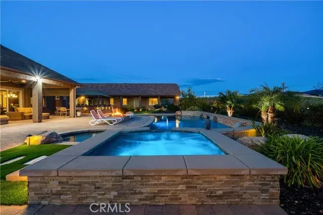Welcome to your own private oasis in the heart of Temecula wine country! Situated on 4.5 acres of picturesque land, this spectacular estate offers the perfect blend of luxury, comfort, and entertainment. As you enter through the gated driveway, you're greeted by a serene fountain and meticulously landscaped grounds, setting the tone for the tranquility that awaits. Step inside to discover a newly remodeled kitchen featuring top-of-the-line appliances, including an 8-burner Decor range, catering to the needs of any chef or entertainer. Modern, large-format tile floors flow seamlessly throughout the main living areas, enhancing the sense of spaciousness accentuated by high ceilings and wide halls. The main home boasts a primary suite with an oversize patio door opening to the never ending views, a dream walk-in closet and a spa like bath, Jack and Jill bedrooms with walk-in closets, a convenient home office, and luxurious finishes throughout. Additionally, the guest house offers a fully self-contained living space complete with a full kitchen, ensuite bedroom, and laundry facilities. It's the perfect Next-Generation space or even use it as a rental unit. The spacious bonus room with a full bath provides endless possibilities, whether it's transformed into a man cave, game room, or additional bedroom. Car fanatics will delight in the oversized garage, with enough space to accommodate a 45' RV and 6-8 cars, ensuring that every vehicle is well taken care of. Outside, the entertainment options are endless. The backyard is a haven for hosting gatherings, featuring an inviting pool