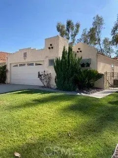 Beautiful home nestled against the the hills at the north end of the San Jacinto Valley. This home has it all without burdening with maintenance. It is a single story, with a master suite, generous closets, a secondary bedroom and a den that can be used as a dining room or office. The kitchen is fresh & bright with a generous breakfast bar and a great view over the greenbelt below. The dining area is directly adjacent and also has a wonderful view. The living room is spacious, with cathedral ceilings and built in book or display shelves. Beyond the den is a charming atrium, with doors to the secondary bedroom. This is a 'patio' home that features the desirable view toward the golf course, fully fenced and private. There is also an attached two-car garage with laundry hookups and established lawn. These homes are not often available, don't wait. Come see what the easy life can be like; near Soboba Casino, the Country Club and PGA championship golf course, an easy drive to MSJC and quick access to Ramona Expressway. No pets, please!