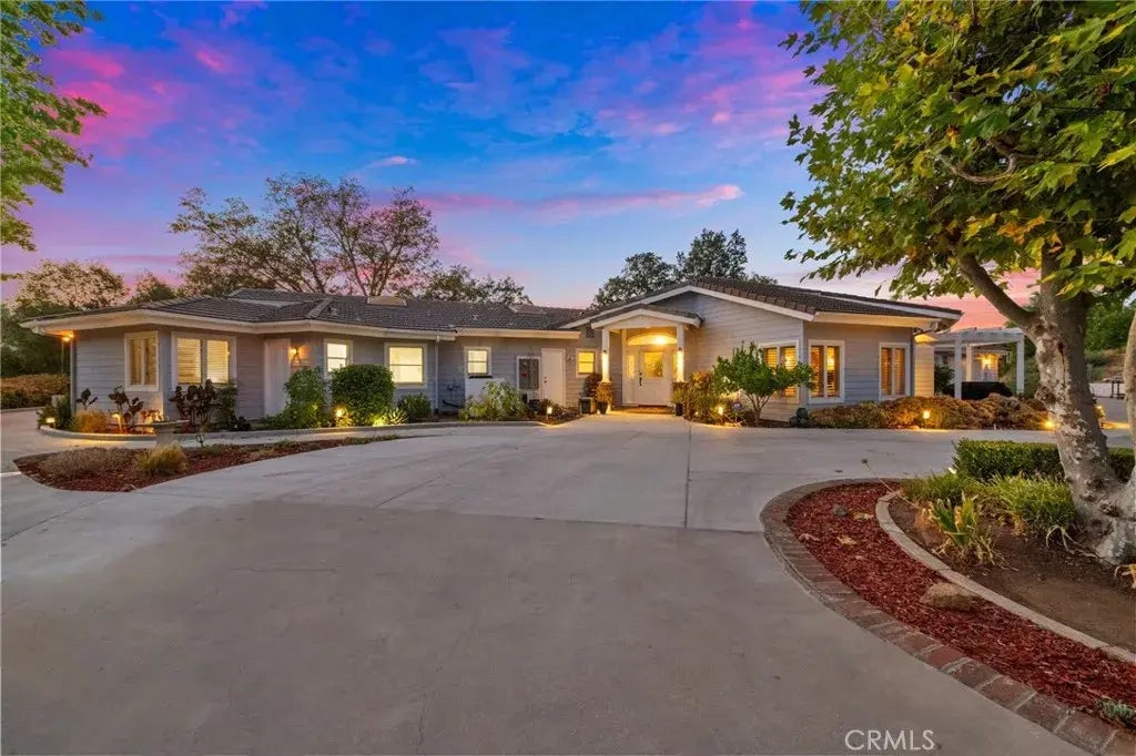 Discover your secluded equestrian paradise on over five pristine acres, nestled among ancient oak trees in the highly desirable La Cresta community. This enchanting estate offers a serene, park-like ambiance that captivates at first sight. Inside the main residence, you'll find nearly 3,000 square feet of thoughtfully updated living space, featuring energy-efficient amenities such as 48 solar panels, a new septic system, and a fresh well pump. While the home is connected to city water, the well ensures low irrigation and barn maintenance costs. The open floor plan, vaulted ceilings, and exposed beams create a welcoming and spacious atmosphere, complemented by wood-look tile flooring and bespoke lighting. The cozy wood-burning fireplace adds a touch of rustic charm, while the modern kitchen shines with quartz countertops, sleek cabinetry, and new stainless steel appliances. A flexible den offers the option to add an extra bedroom to meet your needs. A few steps away, the inviting guest house provides around 500 square feet of privacy and comfort, complete with a kitchenette, bath, separate driveway, and private yardideal for hosting visitors or generating rental income. Outside, unwind by the sparkling pool amidst lush gardens, or stroll to the custom-built barn, designed for equestrian enthusiasts. The barn features three stalls, a tack room, and a large roll-up door. Horses will thrive in the shaded pastures, while you relax beneath the fruit trees or by the wishing well. With panoramic views of La Cresta and a vibrant orchard, this property offers a peaceful sanctuary tha