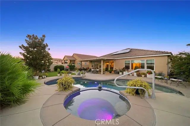 Welcome Home! This beautiful SINGLE STORY POOL home features 4 bedroom, 2.5 bathrooms and sits perfectly on an oversized lot in the highly desirable neighborhood of Spencers Crossing. This home is immaculate and completely upgraded. As you walk in, you are greeted with a bright airy entrance, high ceilings and that Open Floor plan everyone is looking for. Stunning Gourmet Kitchen to include Custom White Shaker Cabinets, Modern Quartz Counters with an Expansive Center Island which opens to the Great Room and Dining Area. Stunning Master Suite which includes plenty of natural light, view of the backyard oasis and Large Master Bathroom with Dual Vanities, Walk-in Closet, and Soaking Tub with Separate Shower. Moving outside you will find custom concrete patio, Alumawood Patio Cover, Low Maintenance Turf and Sparkling Pool and Spa. Also enjoy PAID OFF SOLAR. Enjoy walks on the beautiful scenic trails, Resort-style amenities such as pools, parks, playgrounds, clubhouse and MORE. Close to nearby freeways, shopping, restaurants, and Top Rated Murrieta Schools. This home is an absolute MUST SEE!
