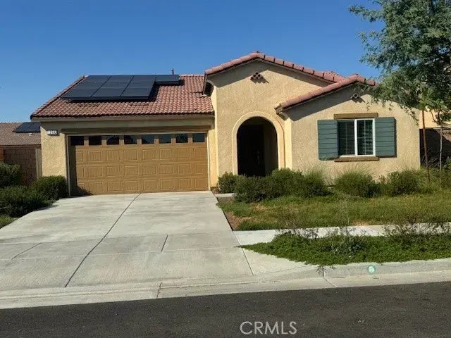 Come visit Heritage Place in Hemet! This QUICK MOVE-IN home is a lovely 1,576 sf single-story, 3BR / 2BA home with a Spanish exterior faade **INCLUDES SOLAR**and a COVERED PORCH that leads to the WIDE entry hall just steps away from the open concept main living areas, a Great room, Dining area and, island Kitchen with a breakfast bar, granite counter tops, built-in stainless steel appliances, and pantry closet. The home also includes White shaker-style cabinetry. upgraded LVP flooring throughout, WASHER & DRYER, REFRIGERATOR, WINDOW COVERINGS AND BACKYARD LANDSCAPE! The main bedroom has a spacious ensuite bath with a LARGE walk-in closet, walk-in shower with bench seat and dual sink vanity, separate commode room, and personal linen closet. On one side of the home are the remaining two guest bedrooms with full bathroom. And to top it all off, this home has a direct-access 2-car garage pre-plumbed for an electric car! Smart home technology is throughout this home and IS INCLUDED along with a FULLY LANDSCAPED AND IRRIGATED front and back yard. This is a QUICK MOVE-IN home ready NOW and we can't wait to work with you to Welcome your buyer Home!
