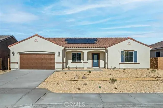Make first impressions count with this beautiful new construction home in Victorville. This single-story, three-bedroom, two-bath home is bursting with character. This home offers an incredible, open layout, creating a warm, inviting environment. The kitchen is open to the family room, creating the ideal entertainment area. The master suite is the perfect place to retreat to, with an en-suite bathroom with a large shower and a walk-in closet. All upgrades come included in this home such as granite countertops, energy-efficient kitchen appliances, a Wi-Fi-enabled garage door opener, solar panels and more.