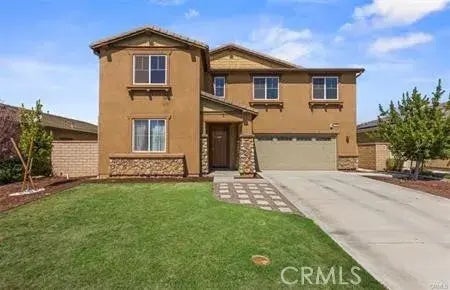 **Dont miss out on this incredible opportunity!** Welcome to this stunning two-story home, located in the highly desirable Audie Murphy Ranch community in Menifee. This beautifully upgraded 3,100 sq. ft. residence features 5 bedrooms, 3 baths, and boasts numerous premium upgrades, including **OWNED SOLAR** and a **SPOOL**perfect for year-round relaxation. As you step inside, you'll be greeted by soaring ceilings, custom tile flooring, and high baseboards, all bathed in natural light. The **main floor** offers a spacious **bedroom** and a full bath with a modern standing shower, making it perfect for guests or multi-generational living. The open-concept design flows seamlessly into the expansive great room, where you'll find a gourmet kitchen complete with quartz countertops, rich dark cabinetry, stainless steel appliances, an island with a convenient eat-up bar, and a large walk-in pantry. Easy access to the **3-car garage** adds to the home's functionality. Upstairs, you'll discover laminate flooring throughout, high ceilings, and a versatile **loft**ideal as a media room or additional living space. The large **laundry room** offers plenty of storage and a wash sink for added convenience. The three generously sized secondary bedrooms all feature walk-in closets, and the second bathroom includes a dual vanity and a soaking tub/standing shower combo. The luxurious **primary suite** boasts mountain views, a ceiling fan, and a spa-like ensuite with a soaking tub, standing shower, dual vanities, and a walk-in closet. This home is equipped with a whole-house **water purification