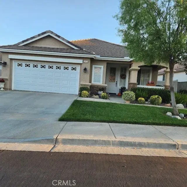TRULY an OASIS, a 55+ LIVING-THE-LIFE destination for the ACTIVE Senior! This is HOME for the RESORT STYLE, DISCRIMATIVE, SECURITY-MINDED SENIOR. This GATED COMMUNITY sits in the DESIRABLE CITY of MENIFEE. Very MANICURED with FULL AMENITIES, CLUBS for ANY INTEREST (SEE WEB SITE/YOU TUBE). CLOSE TO ALL, 215 FREEWAY, SHOPPING, BANKS, DINING AND A GREAT WALKING AREA. IMACULATE INSIDE AND OUT WITH TRASH, FRONT YARD LANDSCAPE AND WATER INCLUDED. LOW MAINTAINACE BACK YARD WITH PATIO. THIS CONTEMPORARY OPEN FLOOR PLAN IS IDEAL FOR ENTERTAINING AND EASY LIVING. THE LARGE BONAIRE FLOOR PLAN OFFERS A LARGE FAMILY ROOM WITH RAISED HEARTH FIREPLACE WHICH OPENS TO A LARGE CHEFS KITCHEN. THE FORMAL LIVING AND DINING ROOM CAN BE ADAPTED TO FIT YOUR LIFE STYLE. THE SPACIOUS MASTER BEDROOM HAS HIGH CEILINGS, A SLIDING GLASS DOOR THAT ENTERS TO YOUR PRIVATE PATIO , AN EN-SUITE WITH A LARGE WALK-IN CLOSET. TILE AND LAMINATE FLOORING THRU OUT, EXTRA LARGE LAUNDRY ROOM WITH LOTS OF STORAGE, OVERSIZED GARAGE WITH STORAGE CABINETS AND CAN ACCOMODATE 2 CARS AND A GOLF CART! PRIDE OF OWNERSHIP PROPERTY.....A MUST SEE! NO SMOKNG, SMALL PET OK, and OVERSIZED GARAGE WITH LOTS OF STORAGE!