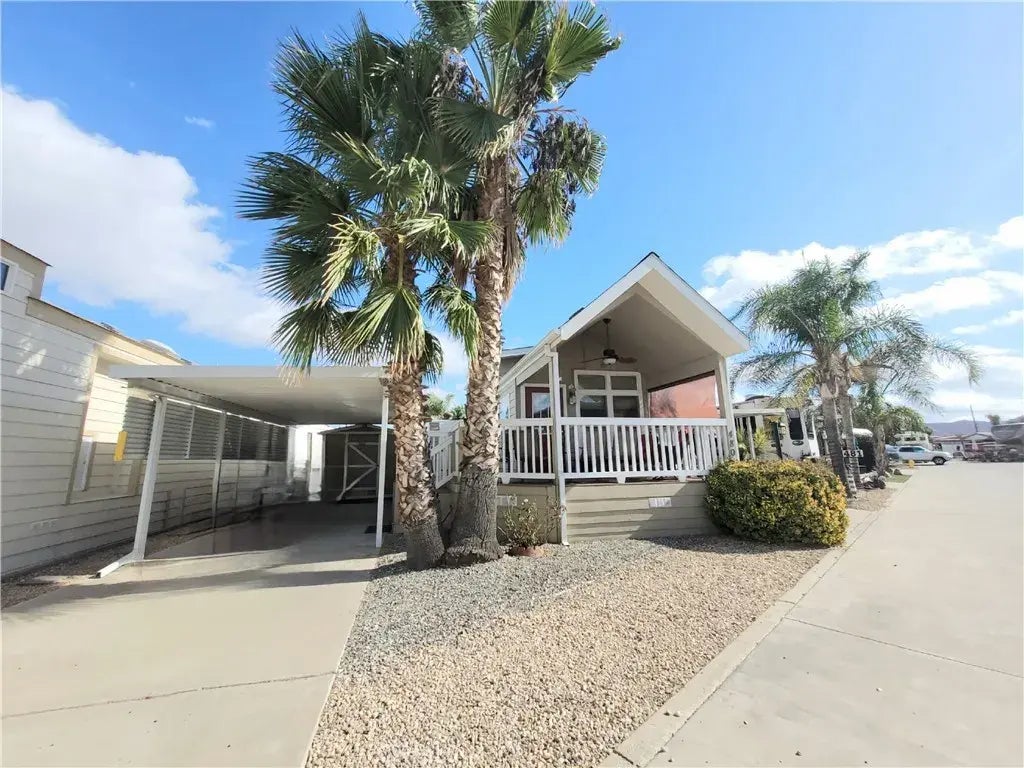 Set in the gated 55+ resort community of Mountain Shadows, you OWN the land beneath your home with NO space rent. This lovely newer 1 bedroom home with huge additional loft is an entertainers delight. Loft is 176 Sq. Ft. and approximately 4 feet from floor to ceiling - suitable for storage or 'kid-cave' for grandchildren or possible extra bedroom for guests. Home is smartly furnished from top to bottom showcasing the light and bright interior and open floor plan. This home with a stylish ceiling fan is resort living At-Its-Finest! The home is well appointed with neutral tile flooring and carpet in the loft area. Your chef will appreciate the kitchen with dishwasher (yes, dishwasher), refrigerator, full sized stove, and microwave. So much storage inside and out. The exterior showcases private parking and a weatherproof covered front patio with decking that extends from front of the house to the backyard. Off the back area is a large closet for the washer/dryer and more storage. The exterior of the home has citrus trees and an easy-to-maintain hardscape so you can spend more time enjoying the sunsets and all this resort community has to offer. A/C is newer and is ready for the next summer. The shed includes electricity and plenty of space for your items. Truly a rare opportunity in this community. This fantastic 55+ community features state of the art amenities including pool, spa, club house, many events for the active lifestyle: Community dinners, dances, and Saturday Breakfast. So much to do in this gated resort community. HOA $244/month and covers water, sewer, trash, wif