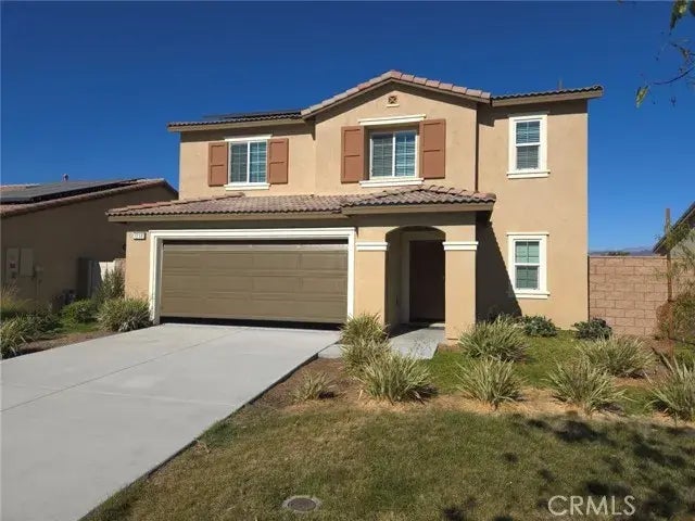 Welcome to Heritage Place in Hemet with **SOLAR INCLUDED**! This beautiful 1,705-sf 2-story home with a Spanish exterior faade has an open concept floorplan with Great Room, Dining area and island kitchen with breakfast bar and has a walk-in pantry, granite countertops, stainless-steel built-in appliances and a powder bathroom downstairs. Three bedrooms, 2 bathrooms with a LOFT and generous laundry room upstairs. The upstairs Main bedroom has an ensuite bath with a dual vanity, walk-in shower, separate commode room, and nice size walk-in closet. The home comes complete with White shaker-style cabinetry, DESIGNER luxury vinyl plank flooring throughout, and WASHER & DRYER, REFRIGERATOR, WINDOW COVERINGS AND BACK YARD LANDSCAPING! You'll also find a direct access 2-car garage PRE-PLUMBED for an electric car! This truly modern home has all the SmartHome features you would expect and, is FULLY LANDSCAPED AND IRRIGATED in front and back yards. Heritage Place is situated close to neighborhood parks, shopping, and freeway access. This home is ready for move-in NOW and we can't wait to work with you to WELCOME your client HOME! * Solar is Included in the Price of the Home * * Vinyl Throughout the Home - No Carpet *