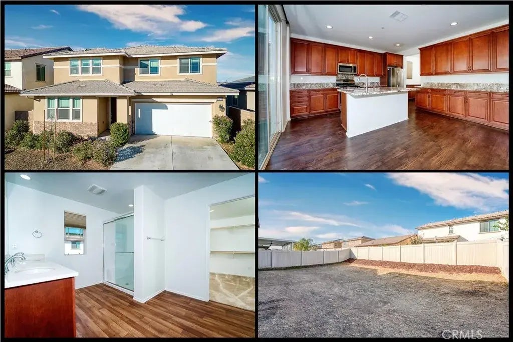 Discover the perfect blend of space, style, and savings in this exceptional 6-bedroom, 3-bathroom home in the sought-after Green Valley Ranch neighborhood of Perris. This two-story gem stands out as the only true 6-bedroom property for sale in the area, and it's priced $20,000 below comparable new builds, making it the best buy on the market! Step into the highly upgraded kitchen, featuring ample cabinet space, beautiful quartz countertops, and sleek stainless steel appliances, all complemented by upgraded flooring and a fresh, full interior repaint. The main floor offers a convenient bedroom and bathroom, ideal for guests or extended family. Upstairs, the oversized laundry room and the huge walk-in closet in the primary suite provide both comfort and practicality. Recessed lighting throughout, a tankless water heater, instant hot water system, and energy-efficient solar panels make this a turnkey property ready for modern living. With easy freeway access and all the conveniences you need, this home is an unbeatable value. Dont miss the chance to call this beautiful home in Green Valley Ranch your own!