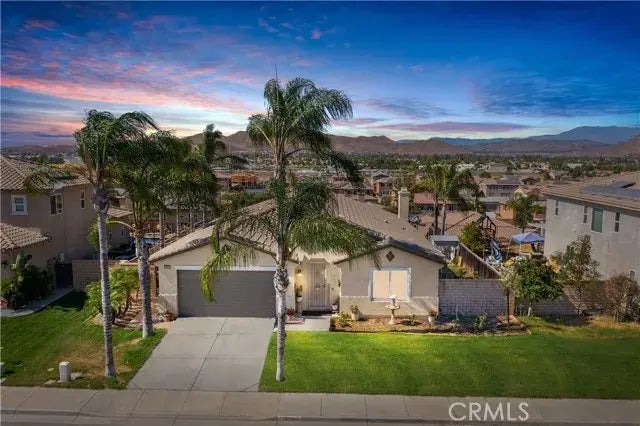 Welcome to this stunning ranch-style rental home, perfectly positioned to capture breathtaking sunset views! Spanning 2,134 sq.ft., this single-level dream offers 3 spacious bedrooms, 2 full bathrooms, and a 3-car tandem garage with a sleek epoxy finish. Enter through a grand entryway into an inviting great room, ideal for entertaining, which flows effortlessly into a bright, open kitchen. Here, you'll find natural wood cabinetry with chic black hardware, beautiful granite countertops, a large island, stainless steel appliances, recessed lighting, and stylish tile flooring. The primary suite, tucked at the back of the home, provides the perfect retreat with ample privacy. Step outside to a fully fenced backyard designed for relaxation and entertaining, featuring an expansive covered patio, stamped concrete, built-in BBQ, fire pit, and garden area. This home truly combines elegance, comfort, and outdoor living with unforgettable panoramic views!