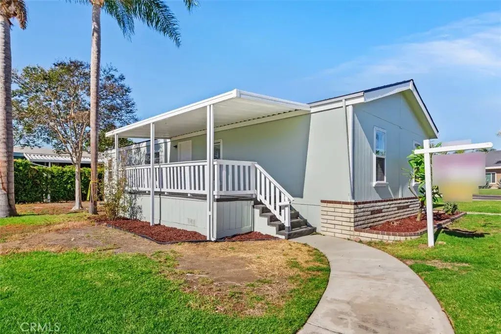 Turn key and move in ready in a desirable Family All Ages gated community. Orange County Living - The beauty of this 3 bedroom, 2 bath home has been highly updated with a new roof, new paint interior & exterior, new air conditioner, new water heater and new flooring throughout. Large living room , dining room and new light fixtures. Updated kitchen with new sink, faucet, dishwasher and garbage disposal. New guest bathroom with reglazed tub & shower.. Primary bedroom features a walk-in closet. Close to all shopping and dining and a short drive to beaches.#1 School district, and 1 mile from Yorba Linda Park. Friendly Village Anaheim is a beautifully landscaped community that offers many amenities including a clubhouse with a full kitchen, gym, solar heated pool and spa. RV parking (small fee to rent space). Low land lease fees of $1,600.00 per month. 11 miles from The Happiest Place on Earth!!! D I S N E Y L A N D. Note: Traditional lending, FHA Conventional, or VA cannot be used as this is "leased land" not a "permanent" foundation.