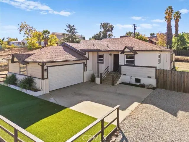 Charming and upgraded 3 bedroom 1 bathroom single story family home on 1/2 acre exuding pride of ownership. This well-maintained ranch style home sits on a well-manicured and usable lot complete with horseshoe pits, fire pit, jacuzzi tub, chicken coop, turf, gated pull-thorugh RV & boat parking, with room to add more. The home greets you with a custom stair entry leading you into the cozy and remodeled family residence. Upon first entry, a wood burning stove located in the spacious living room sets the tone. Connected, a charming country style kitchen with range, hood, country style upper shelving, and area for a breakfast nook. The 3 comfortable bedrooms share a full bathroom with shower, bath and spacious vanity. Towards the rear of the home, a large laundry and utility room with storage, AND additional room with vanity and plumbing, ready for a simple conversion into a 2nd bathroom, also doubling as a mud room. Through the rear door of the home, step out onto you own private deck and entertaining area with a sunken jacuzzi tub, and sunshades giving you the feeling of your very own restaurant patio lounge area. Located in the Northern Hills of Menifee, just minutes from the Canyon Lake and Menifees town square amenities, and centrally located between the 15 and 215 fwys, this home with VERY LOW taxes, no HOA, being turnkey, will be a bullseye for everything you can ask for in a well-priced, affordable-friendly property and is a MUST SEE.