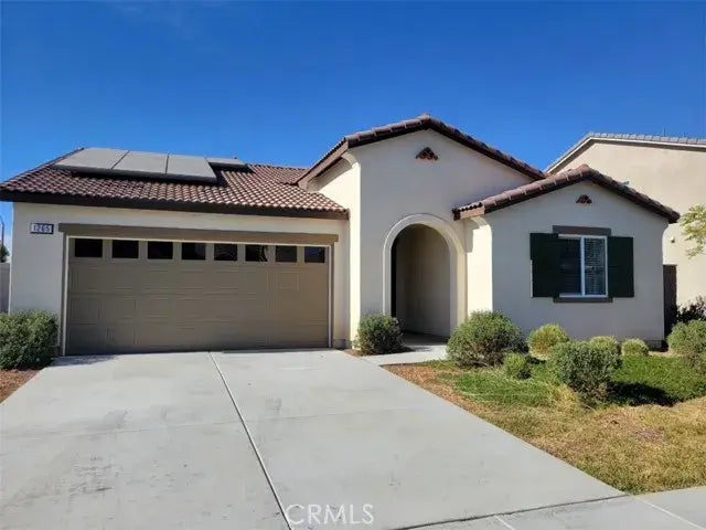 Come visit Heritage Place in Hemet! This QUICK MOVE-IN home is a lovely 1,576 sf single-story, 3BR / 2BA home with a Spanish exterior faade **INCLUDES SOLAR**and a COVERED PORCH that leads to the WIDE entry hall just steps away from the open concept main living areas, a Great room, Dining area and, island Kitchen with a breakfast bar, New Valle Nevado granite counter tops, built-in stainless steel appliances, and pantry closet. The home also includes White shaker-style cabinetry and upgraded LVP flooring throughout, WASHER & DRYER, REFRIGERATOR, WINDOW COVERINGS AND BACKYARD LANDSCAPE! The main bedroom has a spacious ensuite bath with a LARGE walk-in closet, walk-in shower with bench seat and dual sink vanity, separate commode room, and personal linen closet. On the opposite side of the home is the remaining two guest bedrooms with full bathroom. And to top it all off, this home has a direct-access 2-car garage pre-plumbed for an electric car! Smart home technology is throughout this home and IS INCLUDED along with a FULLY LANDSCAPED AND IRRIGATED front and back yard. This is a QUICK MOVE-IN home ready NOW and we can't wait to Welcome you Home!