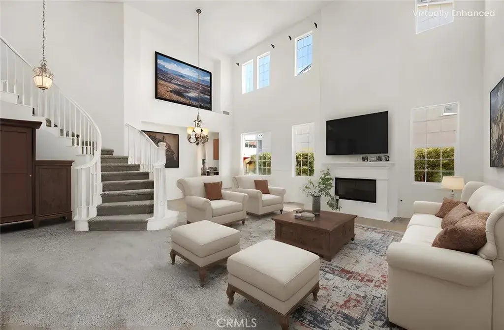 NEW FLOORING INSTALLED!! PAID OFF SOLAR!! Experience luxury in this stunning home located in Central Park, one of Murrieta's most coveted neighborhoods. Upon entry, you're greeted by an expansive formal living and dining area, a dramatic spiral staircase, and soaring cathedral ceilingsideal for entertaining or relaxing in grandeur. Furthermore, the two fireplaces in the living room and family room enhance the ambiance, offering both warmth and tranquility The gourmet kitchen boasts cherry cabinetry, granite countertops, and a spacious island, perfect for meal prep or casual dining. Upstairs, 3 large bedrooms and a bonus loft (could be converted to a 5th bedroom) that overlooks the grand living room, enhancing the home's sense of openness. Downstairs features another large bedroom with a bathroom for guests to utilize. The low-maintenance backyard offers privacy, mature trees, and breathtaking views, while the quiet cul-de-sac location ensures peace and seclusion. With a remodeled clubhouse and access to top-rated Temecula schools, shopping, dining, and freeways, this property provides unmatched value. Plus, with low taxes and a $49 monthly HOA, this home is an exceptional find. Schedule a tour today!