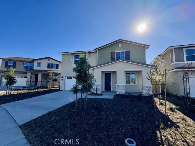 Welcome to this stunning brand new 4 bedroom, 3 bathroom home with 2,443 square feet of modern living space and Solar INCLUDED, situated in the heart of Menifee in the Rockport Ranch gated community. This home is thoughtfully designed for comfort, convenience, and sustainability, featuring energy efficient solar panels, a Tesla Powerwall, and an EV charger is all included in the rent. Nestled on a desirable lot, this property offers a bright and airy open layout with stylish light oak flooring throughout. The contemporary kitchen boasts white cabinetry, new washer and dryer to be installed, granite countertops, Brand New Refrigerator to be installed and stainless steel appliances, and a spacious pantry, seamlessly connecting to the family room bathed in natural light from large windows. Upstairs, youll find generously sized bedrooms, two separate loft areas, and a laundry room for added convenience. The luxurious primary suite features dual sinks, a soaking tub, a separate shower, and a large walk in closet. Head outside to enjoy the oversized backyard that'll soon have pavement and a flower bed for leisure, perfect for relaxation or entertaining. Located in a vibrant new community, this home is directly across from a tot lot and community pool, and just minutes from the 215 freeway, shopping, dining, and more. Embrace modern living with the added benefit of eco friendly features schedule your showing today and make this exceptional home yours! **Window coverings to be installed**