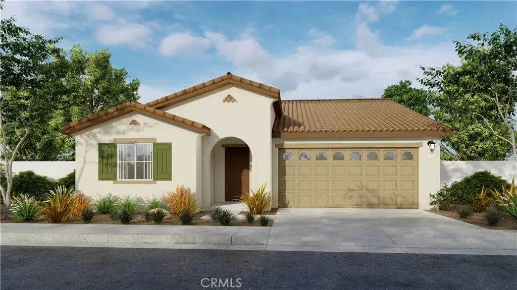 Ivy Pointe Close Out in Perris, Ca. This home is a lovely 1,576 sf single-story, 3BR / 2BA home with a Spanish exterior faade. A COVERED PORCH that leads to the WIDE entry hall just steps away from the open concept main living areas, a Great room, Dining area and, island Kitchen with a breakfast bar, New Valle Nevado granite counter tops, built-in stainless steel appliances, and pantry closet. The home also includes White shaker-style cabinetry and upgraded LVP flooring throughout. The main bedroom has a spacious ensuite bath with a LARGE walk-in closet, walk-in shower with bench seat and dual sink vanity, separate commode room, and personal linen closet. On the opposite side of the home is the remaining two guest bedrooms with full bathroom. And to top it all off, this home has a direct-access 2-car garage pre-plumbed for an electric car! Smart home technology is throughout this home and IS INCLUDED along with a FULLY LANDSCAPED AND IRRIGATED front yard. This home is Under Construction and Move in will be Mid March 2025. * Solar is Included in the Purchase Price * * This Community has "NO" HOA Dues *