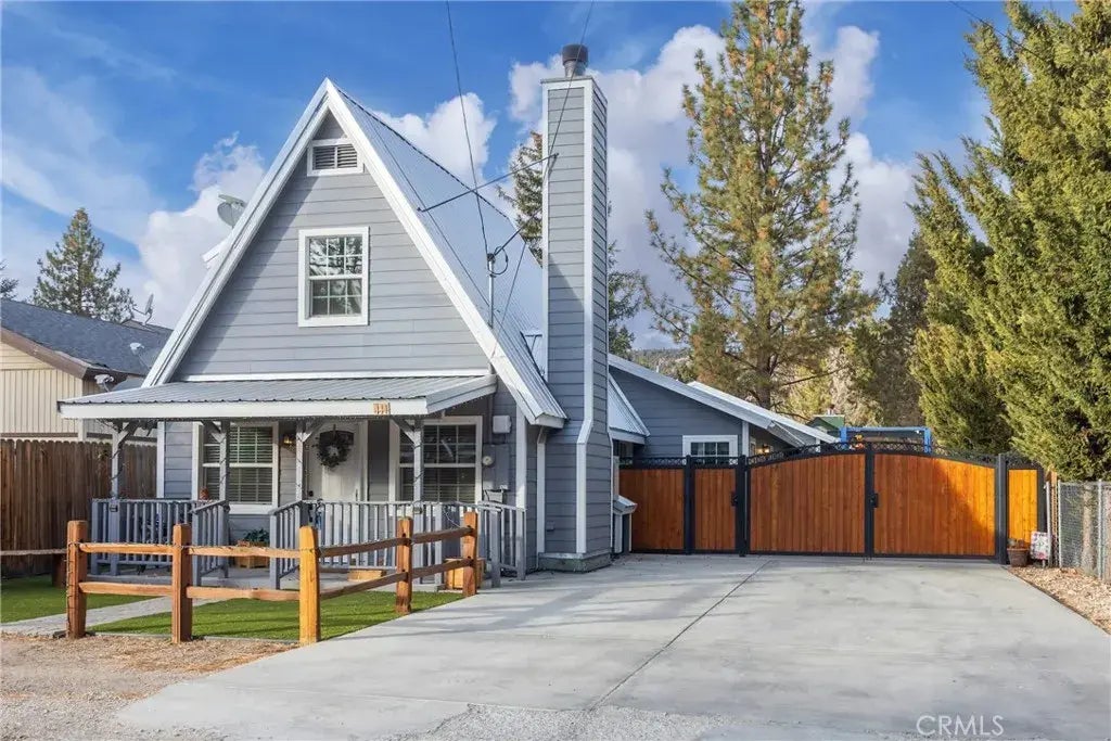 A-frame mid-century home with metal corrugated roof. The open living Rm delivers a striking wood-burning fireplace,skylights- providing a cozy spot on snowy winter nights. The updated kitchen & dining area blend modern style & rustic charm, featuring an expansive granite dining bar space inspiring memorable meals with friends & family! There are 3 bedrooms, including the primary suite- a peaceful retreat with spacious walk-in closet. The ensuite bathroom is updated & spacious. Whether youre relaxing by the fireplace, entertaining on the deck or embracing the thrill of Big Bears year-round activities, your Escape begins here, in a home that delivers so much: a great balance of comfort & function. An interior laundry with full-size washer and dryer. Behind the home is 24' x 28' epoxy floor garage,with storage cabinets that can be used for owner workshop, tools & toys. 220 amp for welding and air compressor, Mechanics dream space. 10'x10' shed at rear of property. Welcome to your mountain retreat offering the perfect blend of contemporary living and serene mountain ambience ~ An ideal place to spend time in the fresh mountain air with your family and friends ~Split AC/Heat units ~RV plug and pump station ~ new windows. If cooking is your love language, spend your time in the remodeled kitchen with its granite counter tops, stainless steel sink and appliances ~ After an amazing day on the slopes skiing, snowboarding and mountain biking, unwind with your friends and family BBQing ~ ~ ~ Don't let yourself miss out on this chance to start creating the memories that will last a lif