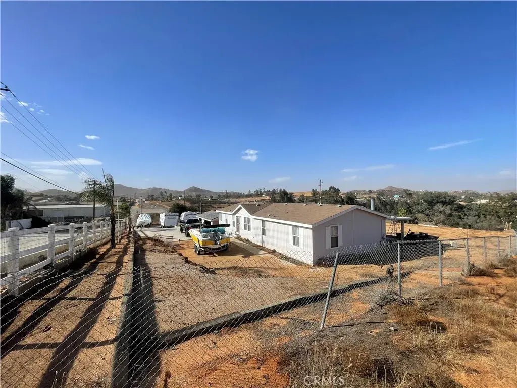 ***Menifee Manufactured on Land With Views*** Grab A Cup Of Coffee And Relax On Your Patio Enjoying The View. 3 Bed/2 Bath on Over 2 Acres. Wow, Great Floor Plan Too! Beautiful Home Offers 2 Living Areas. Main Bedroom to The Left of The Living Room With 2 More Bedrooms, Bathroom and Separate Living Area with Fireplace On The Opposite Side Of The Home. The Kitchen Has Granite Counters, Stainless Appliances, A Walk in Pantry and Eat in Area. Home Has Wood Look Laminate Flooring Thorough Main Areas with Carpeted Bedrooms. In-Door Laundry, Large Detached Garage/Workshop, Solar for Lower Electric Bills and Its On Your Own Well, Low Tax Rate, Great Location Situated In-Between The 15 And 215 Freeways, This Home Offers Tons of Possibilities.
