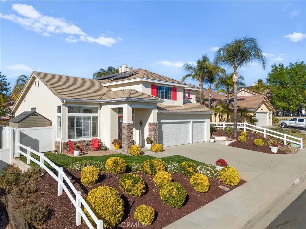 Welcome to your dream home! This stunning 4-bedroom, 3-bathroom pool home is nestled in the highly sought-after heart of Murrieta. This home includes no HOA, low taxes, and a paid-off solar system, this property offers an unbeatable combination of comfort and value. As you step inside, you'll be greeted by an open floor plan filled with natural light, complemented by high ceilings and elegant window shutters. The home features a spacious living room, a formal dining room, and a cozy family room perfect for gatherings. The modern kitchen and updated amenities create the ideal setting for both daily living and entertaining. Outside, your personal paradise awaits! The beautifully landscaped backyard showcases a sparkling pool, shaded areas, and an inviting outdoor barbecue setup. Enjoy evenings by the fire pit, or pick fresh fruit from your own fruit trees. The property also includes durable vinyl fencing, ensuring privacy and style. The well-lit landscaping at night adds a touch of magic to your outdoor space. Convenience is key, with the home located close to freeways, top-rated schools, and a variety of shopping centers. Additionally, the property includes an updated HVAC system, ensuring comfort year-round. Dont miss this opportunity to own a truly remarkable home in one of Murrietas best neighborhoods. Schedule your private showing today!