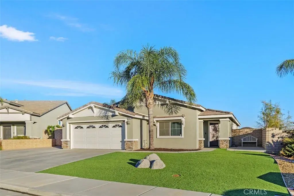 Single story property in the sought-after neighborhood of Canyon Heights in Menifee offering a blend of comfort and style, this wonderful single-story home features 4 bedrooms and 2 bathrooms consisting of 1,785 Sq Ft of living space and 6,970 Sq Ft lot space sitting on a cul-de-sac. A solar home with 14 panels offers significant benefits for those looking to reduce energy costs. The nicely curb appeal with landscaped turf adds to the overall charm and visual appeal of the property. This property's features make it a versatile and desirable place to call home. As you walk into this beautiful home, you'll immediately notice the upgraded wood flooring that flows seamlessly throughout the entire home including all bedrooms with tile floors in kitchen and all bathrooms with light, updated shades of paint, creating a bright and airy atmosphere that complements the modern design. Family room seamlessly connects to the kitchen, creating a warm and inviting space perfect for both entertaining and everyday living. Kitchen features a host of stunning upgrades including painted cabinets, light sparkling quartz countertops, custom tile backsplash and stainless steel appliances. Find the same cabinets and sparkling quartz countertops in all bathrooms. Home has a spacious backyard space with installed turf needing no water maintenance, fire pit, and an installed patio cover, provides an excellent opportunity for outdoor relaxation and hosting memorable gatherings and entertaining guests with views. Other added features of the home includes added concrete expanding concrete for additional