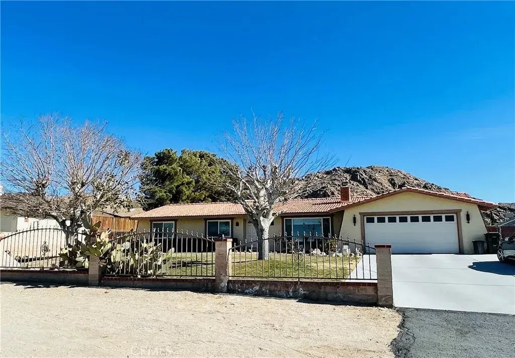Welcome to your Oasis in the Desert! This stunning and remodeled 3 BR, 2 BA with over 18,000 sf of landscaped yard is your dream home. The landscaped front yard has lush green grass behind a designer block wall fence. A completely new septic tank system. A double door entry opens up to new porcelain flooring throughout with wood flooring in all bedrooms. The stunning kitchen has recessed lighting, granite countertops, built-in pantry, overhead microwave, and a bar. The family room includes a wood burning stove, built-in storage and water air cooler for the summer days. The roomy master bedroom and bath have been remodeled, including a new shower. Both other bedrooms are quite roomy. Each room has ceiling fans. The backyard is an entertainer's paradise! Pool, jacuzzi spa, patio, horse shoe pit, tetherball, half court basketball court, fire pit, a 2nd garage, alumawood patio cover, and RV access! Don't miss this one of a kind home!