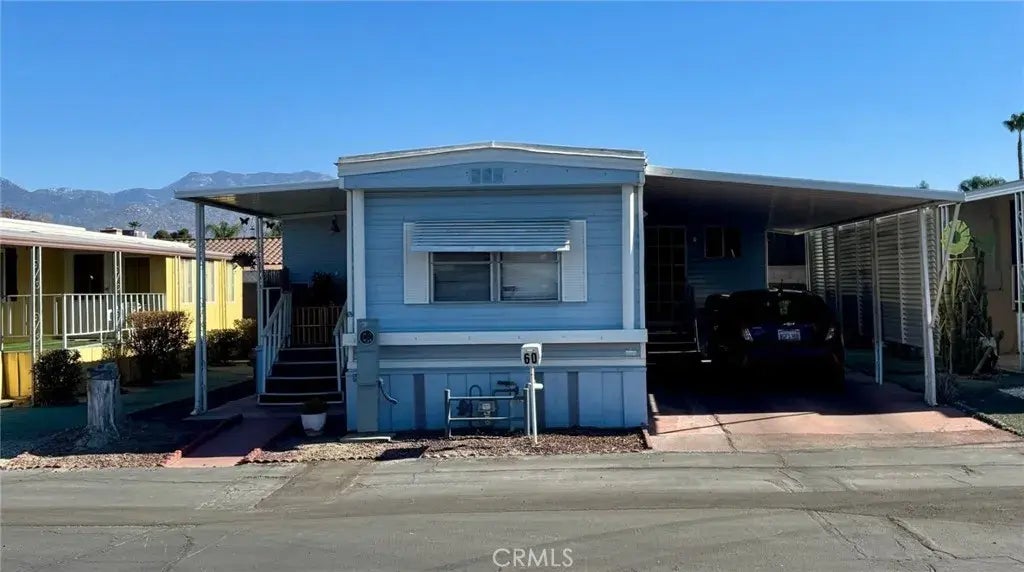 This 2 bedroom, 2 bathroom mobile home is located at space #60 in the Arroyo Fairways space 55+ community in the desirable Valle Vista area with nearby shopping centers, restaurants and Ramona Expy providing easy access for commuting. The property has 2 additions to provide a more spacious living room area, bonus room that could be used as an office or possible a primary suite with a second bathroom/laundry room. Arroyo park provides it's owners with; a pool, jacuzzi, golf course and clubhouse, or you can just sit back and relax and enjoy the quiet neighborhood on one of your porches.