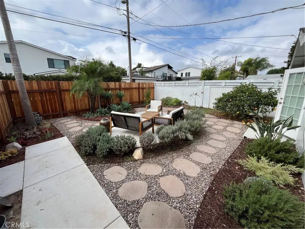 Discover this beautifully renovated 2-bedroom, 1-bath cottage tucked away in a serene residential neighborhood of Eastside Costa Mesa. This BACK UNIT of a two-unit property offers privacy, modern updates, and an expansive wrap-around yard that feels like your own personal oasis. Featuring a bright, oversized living room with hardwood floors and French doors that invite natural light, the home also boasts a modern open kitchen with Quartz countertops and appliances, including a built-in microwave, stove, and refrigerator. The two inviting bedrooms include a larger bedroom with French doors that open directly to the garden. The fully fenced and landscaped yard offers a paved patio, grassy areas, and mature fruit trees (lemon, fig, nectarine, and pineapple guava), perfect for outdoor enjoyment. Additional conveniences include an in-unit washer-dryer, a lockable exterior storage shed, and a private covered carport with direct alley access. Located within walking distance to E 17th Street and Triangle Square for shopping, dining, and entertainment, this charming home also includes water and trash pickup, making it move-in ready and hassle-free. Dont miss this rare rental opportunity that combines comfort, convenience, and charm in one of Costa Mesas most desirable neighborhoods!