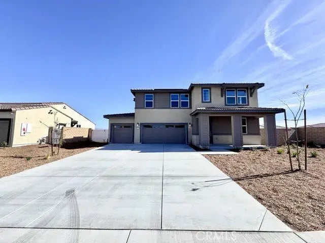 Welcome to your dream home in the sought after community of Quartz Ranch in Menifee! This stunning brand new home features 4 bedrooms, 3 bathrooms, a spacious loft, and over 2,580 sqft of thoughtfully designed living space, now available for lease! With a modern design and included solar panels, this home combines contemporary style with energy efficiency and peace of mind. The exterior exudes charm with fantastic curb appeal, including a welcoming front porch, perfect for relaxing outdoors. The attached 3 car garage offers convenience and ample storage. Enter inside to a light filled, open floor plan designed for modern living. A bedroom, full bathroom, and a generous storage closet are located near the entry. The open concept kitchen boasts upgraded dark cabinetry, sleek quartz countertops, a large pantry, a spacious island, and stainless steel appliances. It seamlessly flows into the bright and airy family room, where natural light pours in through expansive windows. Upstairs, an oversized loft provides versatile additional living space, perfect for a game room, office, or media area. All upstairs bedrooms feature walk-in closets, offering abundant storage options. The conveniently located laundry room near the primary suite includes ample linen storage. The expansive primary bedroom is bathed in natural light and features a luxurious en suite bathroom with dual sinks, a spacious shower, and an impressive walk-in closet. Head outside to the spacious backyard, soon to be completed, this outdoor oasis offers stunning mountain views and plenty of space for entertaining, rel